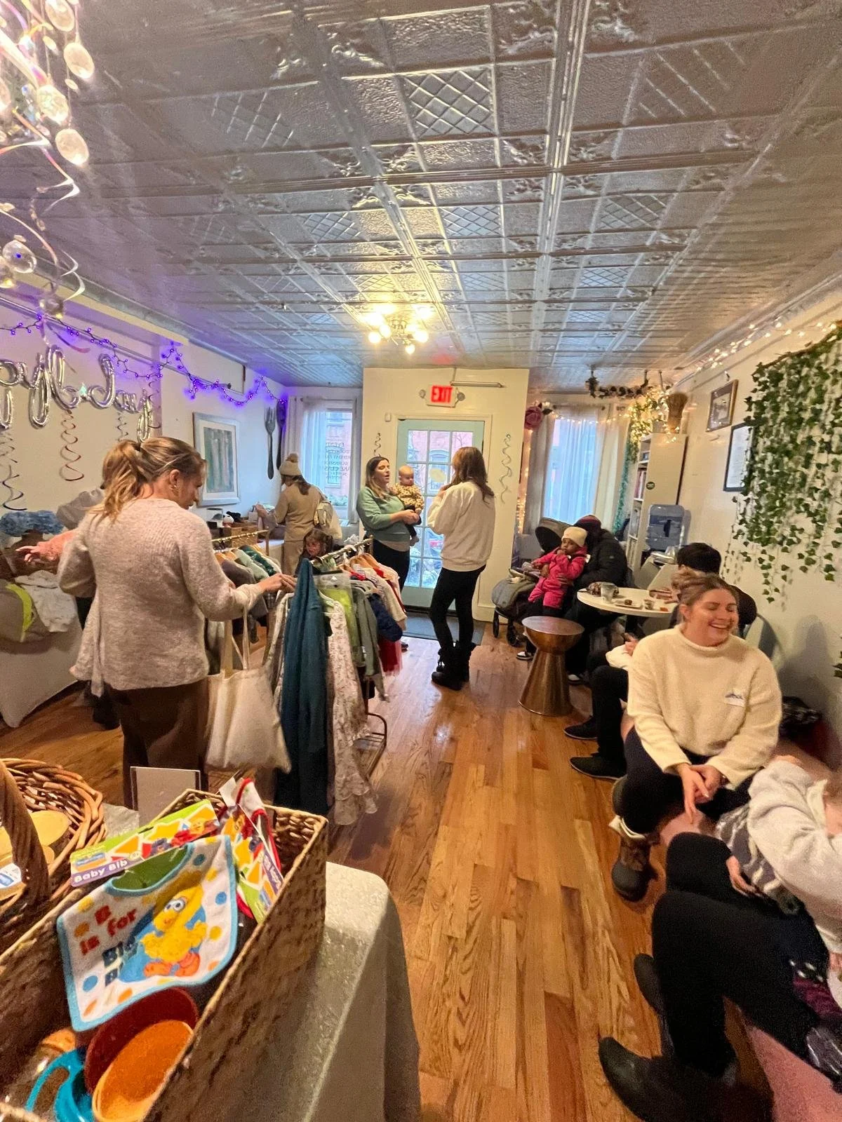Think Sunday-morning coffee, new mom friends, and delicious bites by Jam Cakery, NJ. Moms shopped a beautifully curated boutique using your complimentary Little Swaps tote—no spending required. Connection, community, and a little charm.